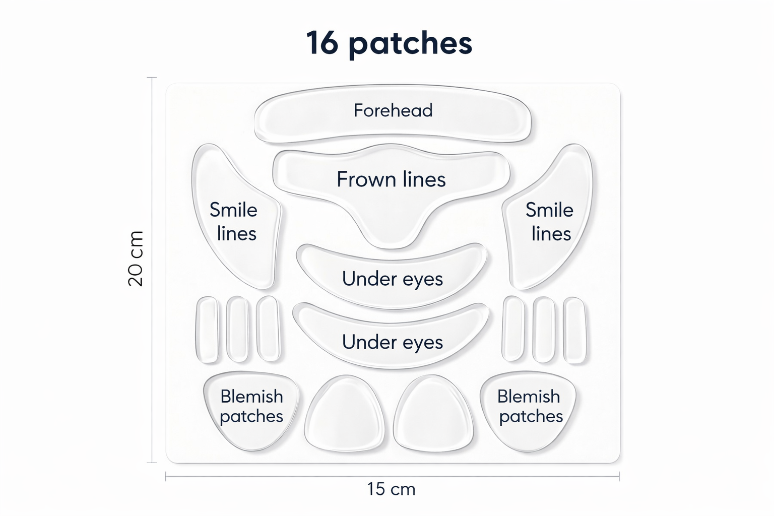 Complete Targeted Set – Includes patches for forehead, eyes, cheeks, neck, mouth corners, and décolletage to treat every area prone to wrinkles.